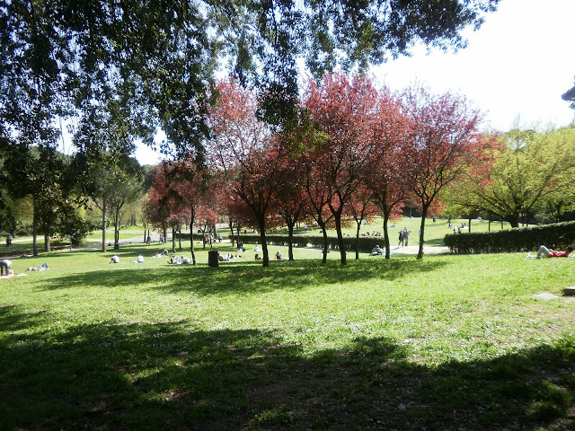 Visitei Roma recentemente. Foi a segunda vez que estive nesta cidade que considero ser a mais bela de todas que conheço. Desta vez procurei visitar alguns jardins na cidade mas, acabei apenas por conseguir estar em Villa Borghese. O parque ocupa uma área enorme, cerca de 80 hectares e é realmente lindíssimo. Villa Borghese é considerado o mais importante jardim publico de Roma e foi aberto ao publico em 1903, depois de ter sido aquirido pela cidade de Roma à família Borghese. Aquilo que começou como uma vinha, foi transformado num jardim formal pelo cardeal Scipione Borghese e só mais tarde adquire um aspecto mais natural. No final do século XVIII o lago artificial foi construído e no meio uma ilha com um templo dedicado a Esculápio, o deus da medicina e da cura na mitologia greco-romana. Em 1911 Villa Borghese foi o recinto escolhido para acolher a exposição mundial, sendo que alguns dos pavilhões dos países participantes ainda existem. Villa Borghese é também um parque de vários museus e galerias de arte, mas infelizmente não tive oportunidade de os visitar. O que mais me impressionou no parque e jardins foi a sua área, que numa cidade moderna e agitada como Roma, é realmente uma enorme mais valia. Depois as belas arvores estão por todo o lado: tílias, ciprestes, abetos, plátanos, cerejeiras e magníficos pinheiros tornão este um parque fascinante e quase nos esquecemos que estamos no meio da cidade. Os relvados também estão bem conservados, e são usados pelos turistas para longos banhos de sol. O único ponto negativo vai para as poucas espécies com flor. Das partes que visitei do jardim apenas reparei nas estrelícias e em alguns gladíolos e roseiras.